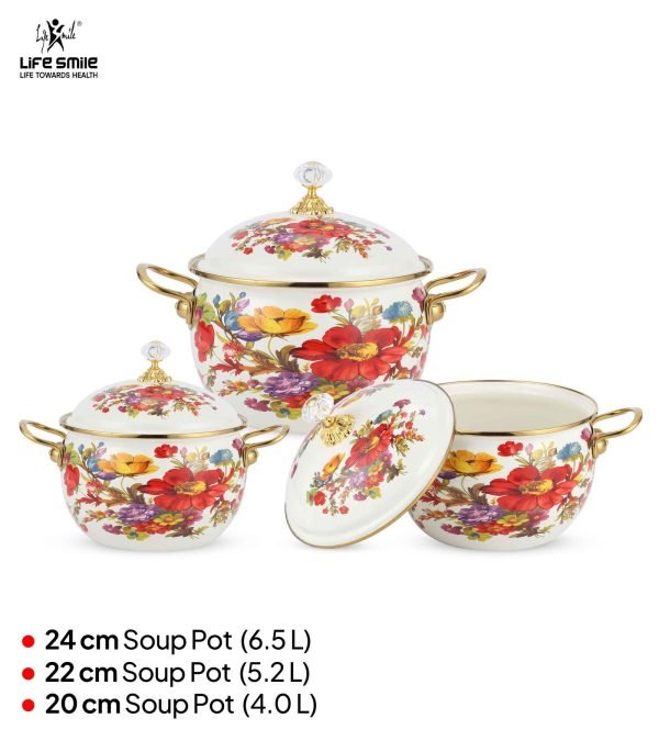 Set Includes: 20 cm (4.0 L), 22 cm (5.2 L), 24 cm (6.5 L) soup pots
