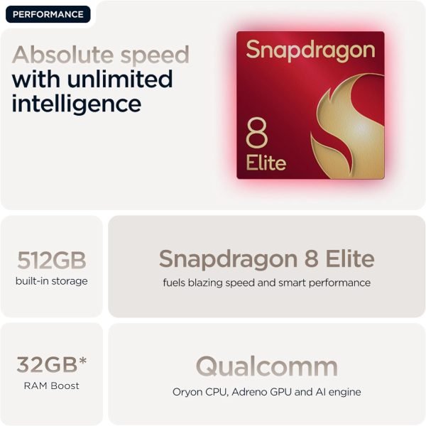 Powered by Snapdragon 8 Elite Mobile Platform, enjoy blazing CPU/GPU speeds, smooth gaming visuals, and advanced on-device AI for image, voice, and more.