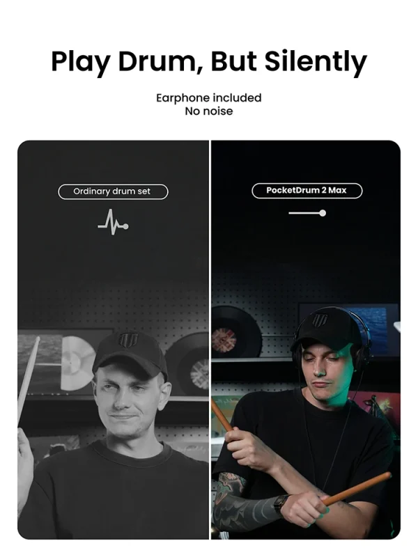 Awarding flexibility, the product comes with a Bluetooth adapter, enabling wireless connection to different devices. This maximizes the range of available software and sound options, permitting users to explore a multitude of drum sounds and beats. In terms of convenience and portability, its pocket-sized design is undoubtedly a standout feature. This makes it perfect for practicing anytime and anywhere without the need for bulky equipment.