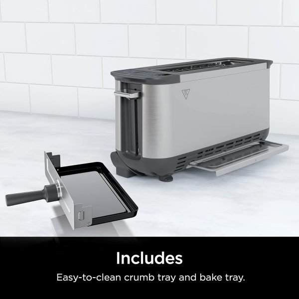 Long, extra-wide slot provides more even results with the capacity to fit 2 slices of thick-cut bread or a bakery-style bagel.