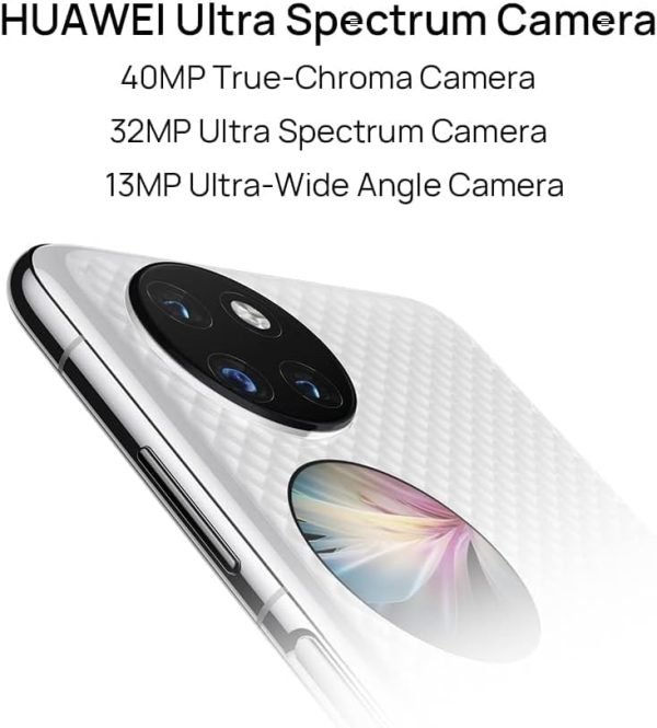 HUAWEI Ultra Spectrum CameraPioneering Mobile Photography:Ultra Spectrum Image Technology,HUAWEI XD Optics,True Chroma Image Engine.Ultra Spectrum Camera Matrix consists of a 40 MP True Chroma Camera, a 13 MP Ultra Wide Angle Camera, a 32 MP Ultra Spectrum Camera, a 10 Channel Multi Spectrum Sensor, an Ultra Spectrum illuminator and an AF Laser.